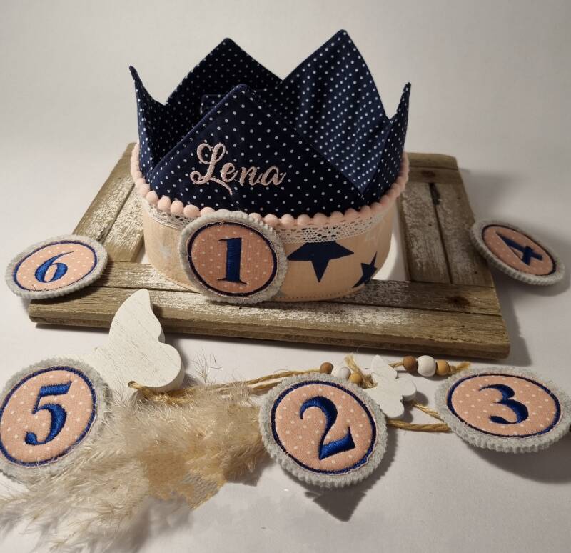 Weiche Geburtstagskronen aus Stoff mit Namen oder Zahl – individuell genäht und mitwachsende Lieblingsstücke für kleine Königinnen & Könige.
