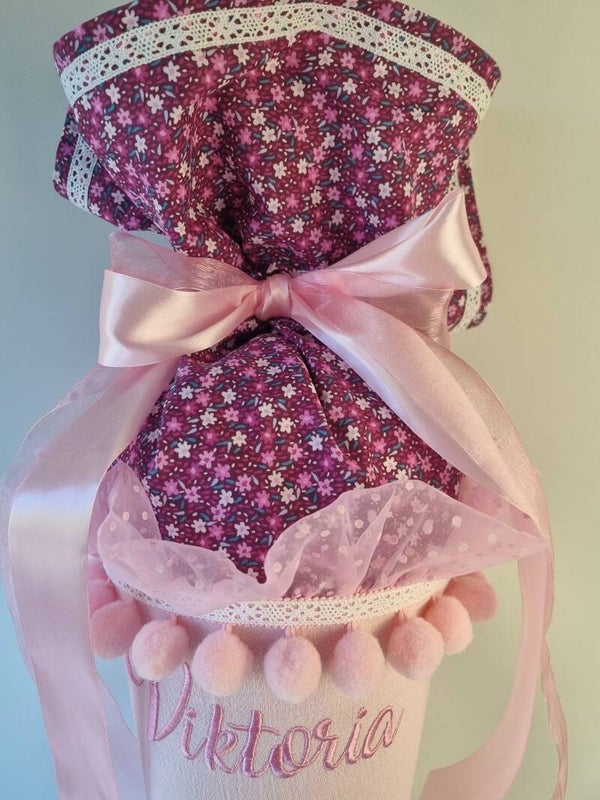Personalisierte Schultüte „Reh“ – handgemacht in Rosa und Beerentönen für Mädchen