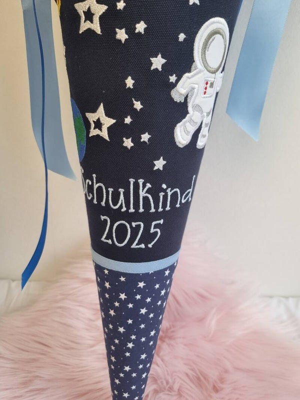 Bereit zum Abheben in die Schule! Diese wunderschöne Schultüte im Weltraum-Design bringt Kinderaugen zum Strahlen.