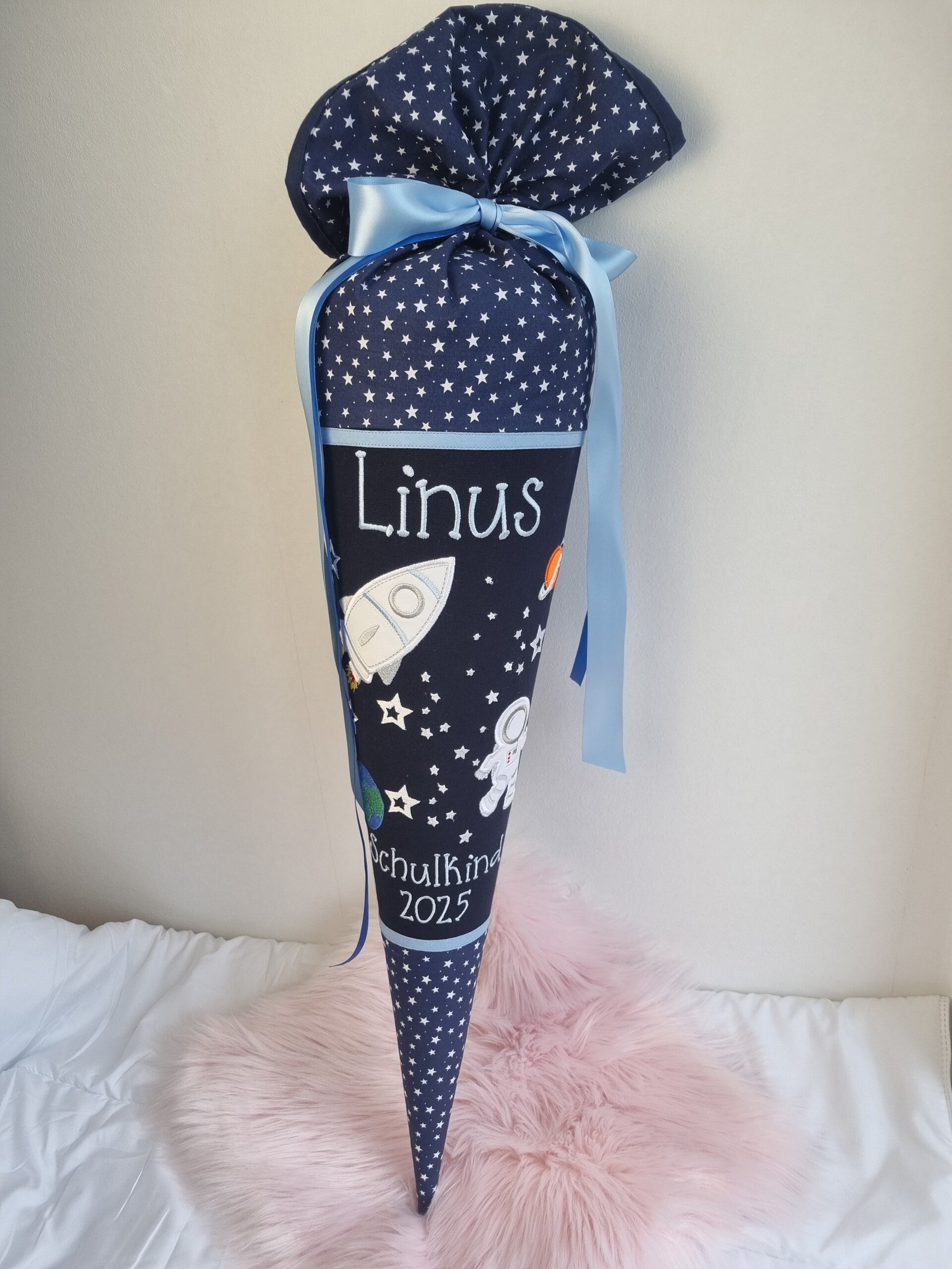 Personalisierte Schultüte „Rakete & Astronaut“ – handgemacht aus Stoff