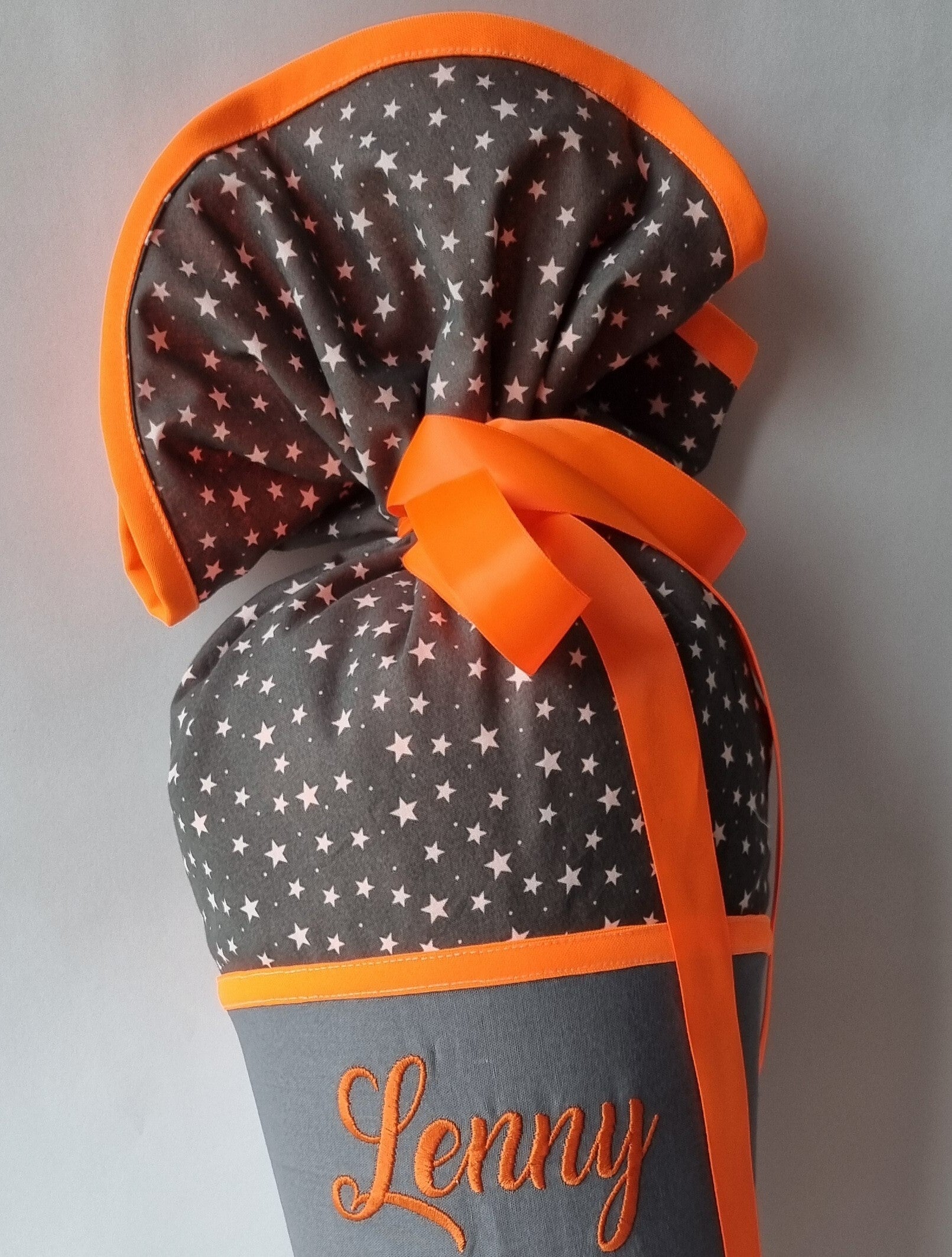 Die Kombination aus Grau, Orange und Weiß macht sie zu einem echten Hingucker – perfekt für kleine Raumfahrer, die mutig ins Abenteuer Schule aufbrechen.