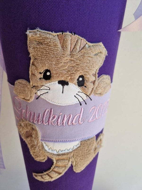 Personalisierte Schultüte „Katze Lila“ – handgemacht mit Liebe