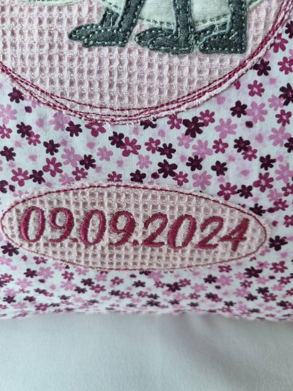 Jedes Kissen wird in liebevoller Handarbeit genäht und individuell mit dem Namen und dem Geburtsdatum deines Kindes bestickt – so entsteht ein ganz persönliches Unikat, das Kinderzimmer verzaubert.