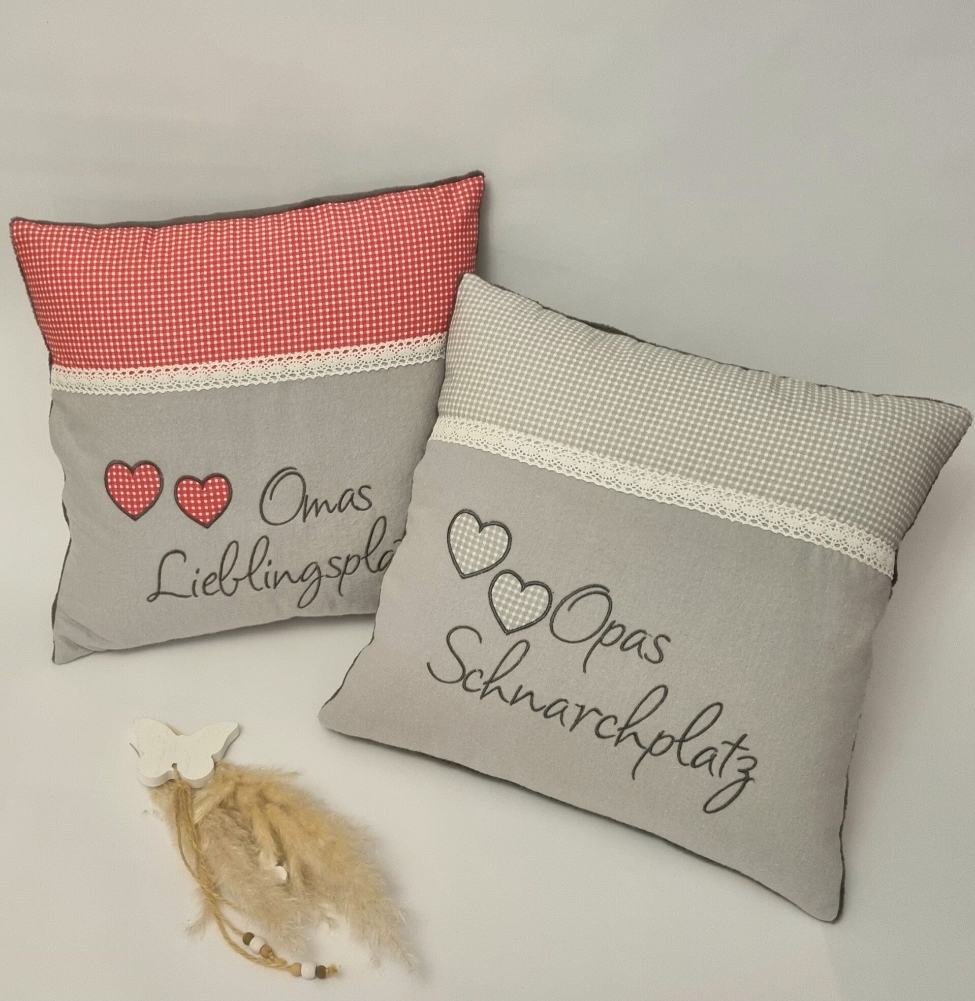 Ob zu Weihnachten, zum Geburtstag, zum Hochzeitstag oder einfach als Überraschung zwischendurch – dieses handgemachte Kissenset ist ein ganz besonderes Geschenk für Oma und Opa.
