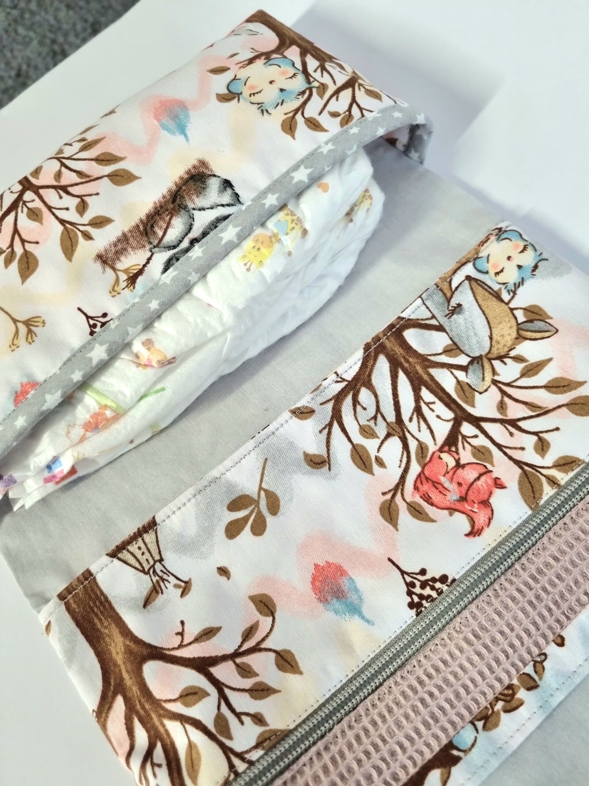 Windeltasche Waldtiere rosa – personalisierte Wickeltasche aus Waffelpique | handgemacht von Mariposa Design