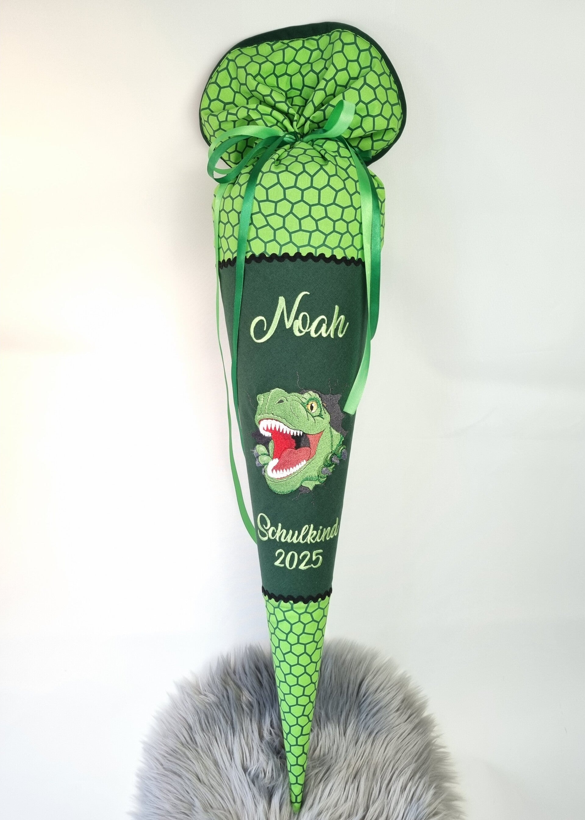 Personalisierte Schultüte Dino – handgemacht aus Stoff